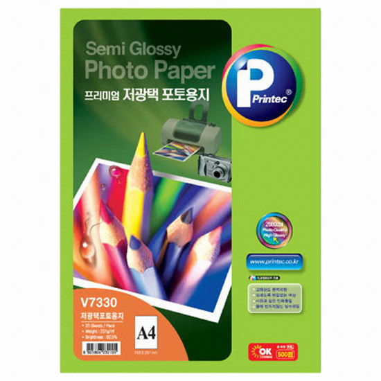 AnyLabel 칼라 잉크젯 포토 용지 V7330 20매 포토용지 / 잉크젯 전용지 / 규격:A4 / 평량:251g / 유광 / 백색 / 크기:210x297mm / 두께:265mic