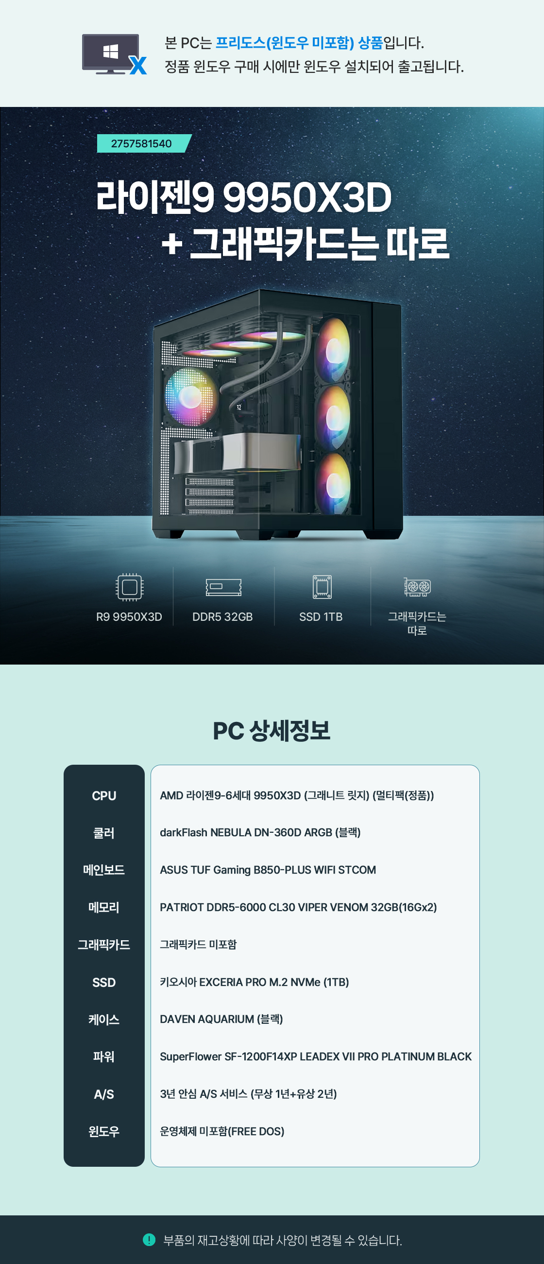 쥐씨 라이젠9 9950X3D + 그래픽카드는 따로 대표 조립컴퓨터