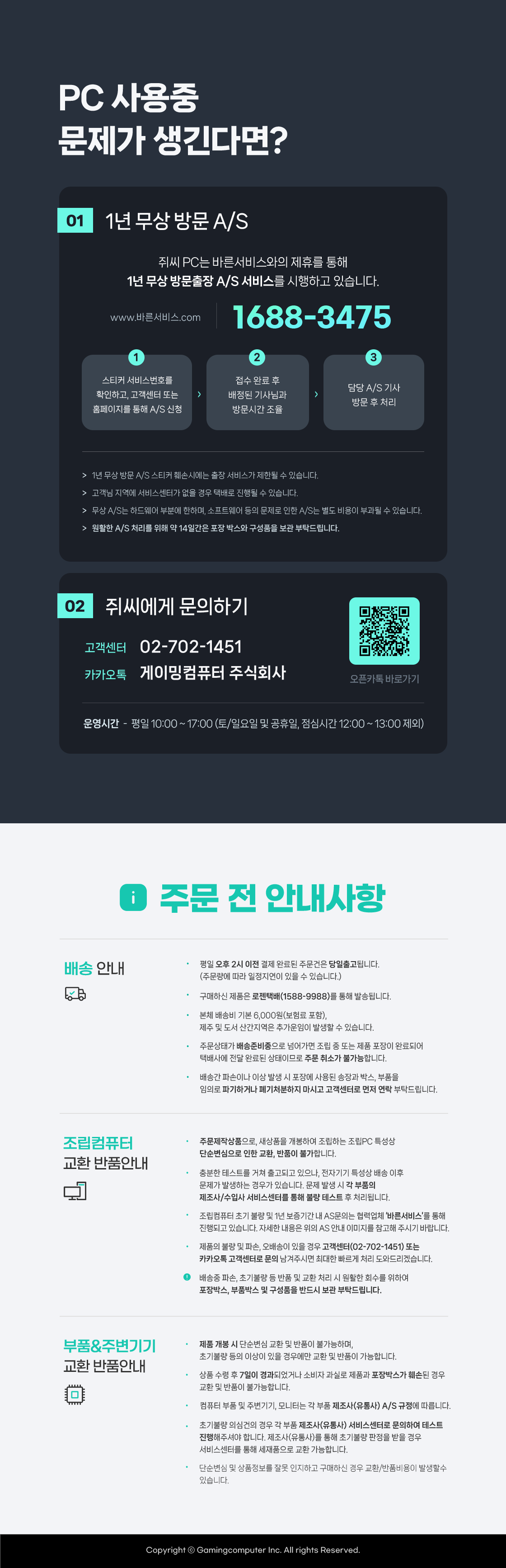 조립 및 프리미엄 테스트, 1년 방문 출장 A/S (1대분)