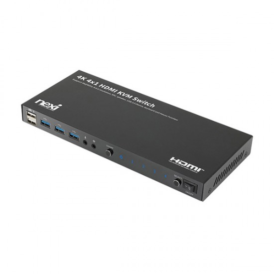 리버네트워크 NEXI NX1663 4포트 HDMI KVM 스위치 KVM스위치 / 콘솔박스형 / PC연결:4대 / 컴퓨터 단자:USB B타입,HDMI / 콘솔 단자:USB A타입 / 외부전원필수 / 어댑터포함 / HDMI 2.0 / 4K@60Hz / [부가기능] / USB허브포트 / EDID